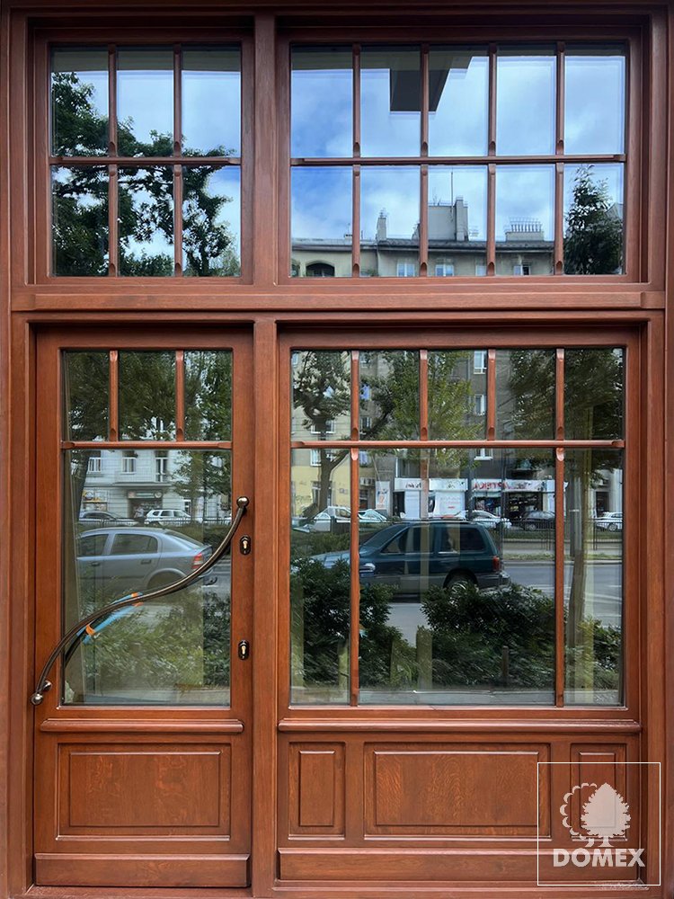 - Ościeżnica drewniana w kolorze skrzydła,
