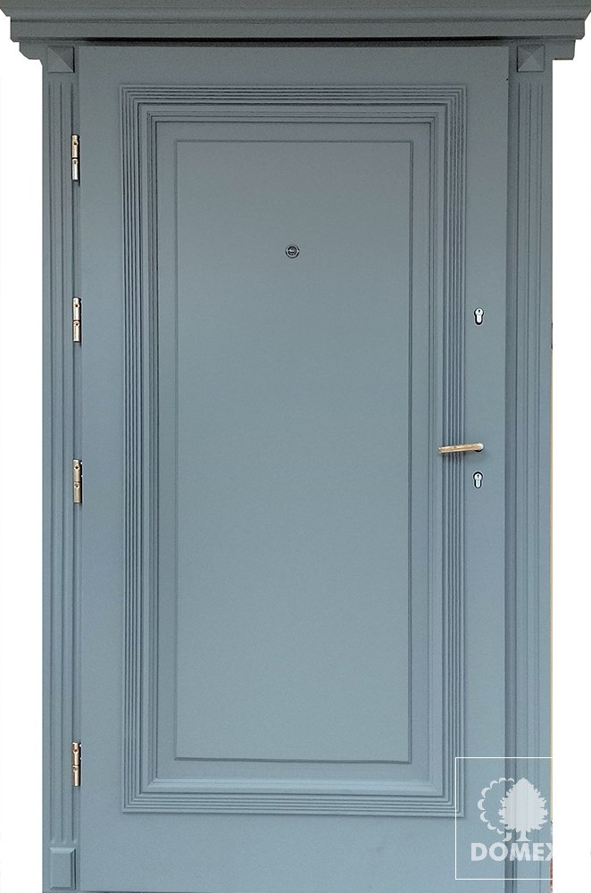 Drzwi zewnętrzne "SIMPLE CLASSIC" korona i listwy drapane od zew. Cena dla drzwi sosnowych, gr 68mm, futryna drewniana standard. Drzwi przylgowe w podstawowym wyposażeniu. Kolor z palety RAL za dopłatą od 500 zł. To jest RAL 7035.